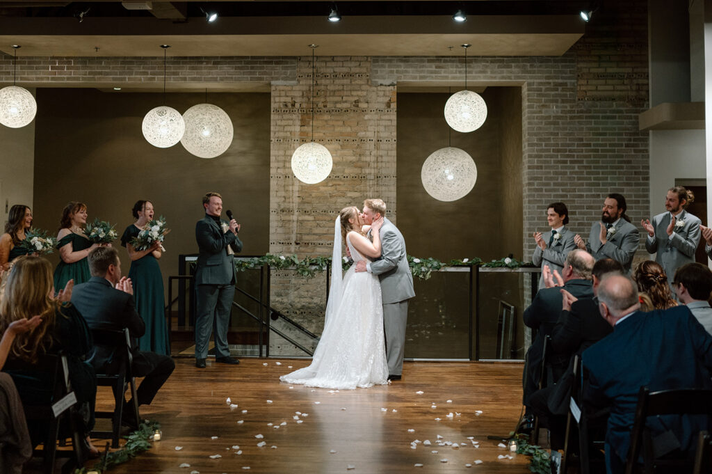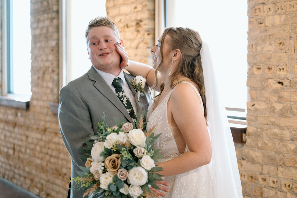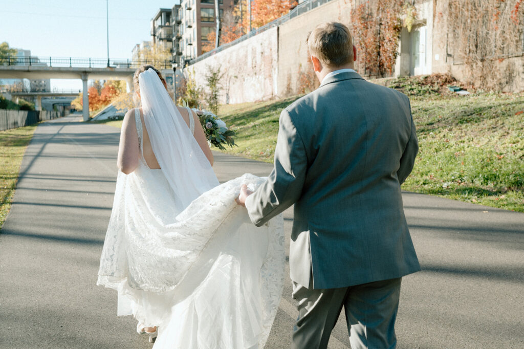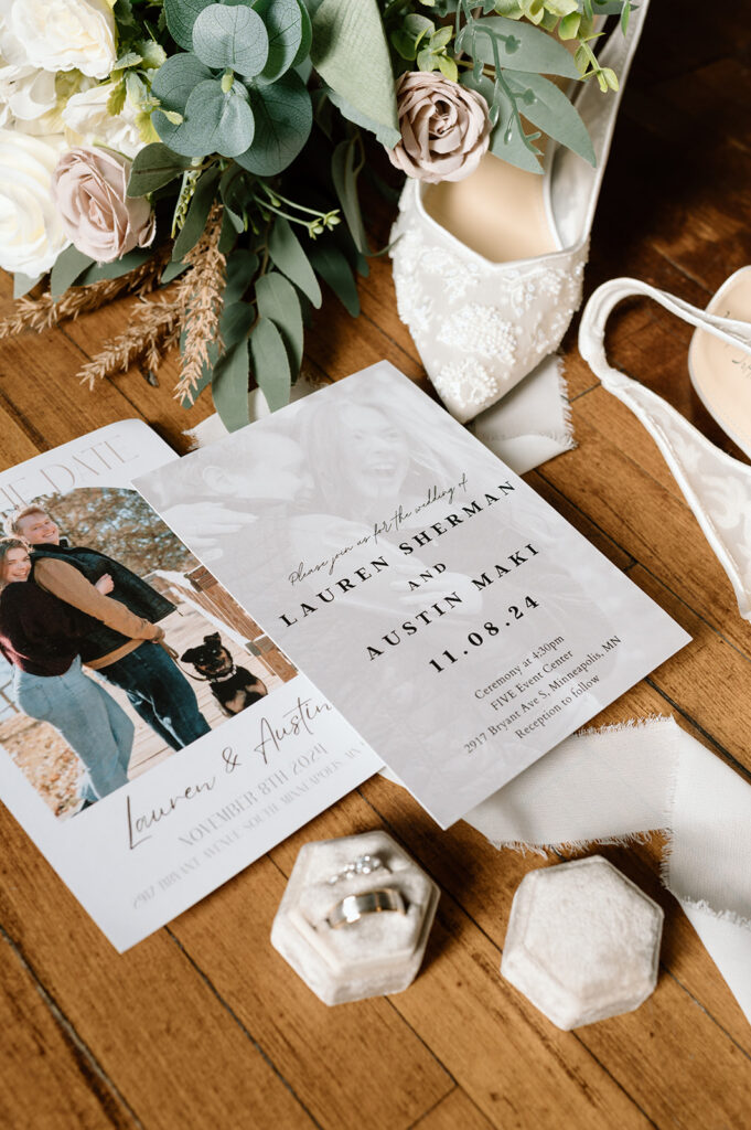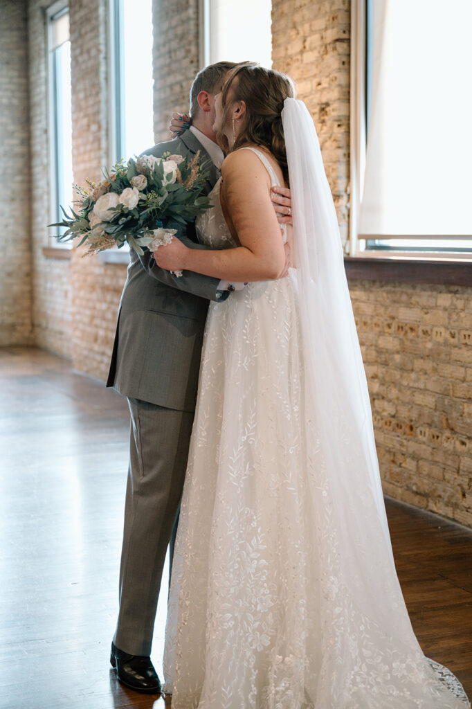 FIVE Event Center is one of my favorite Minneapolis wedding venues, and Lauren and Austin chose it for all the right reasons. The huge windows and high ceilings, exposed brick walls, and stunning main staircase create the perfect mix of industrial charm with soft romantic light. It was the perfect cozy-but-classic vibe for their fall wedding. Plus all the warm, natural light that filled the space is a photographer’s absolute dream.